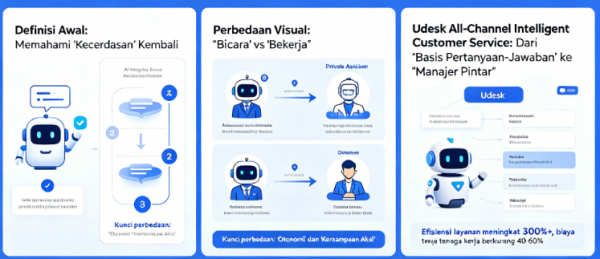Artikel ini merupakan karya asli Udesk. Jika akan diterbitkan ulang, wajib selalu mencantumkan sumber aslinya:https://id.udeskglobal.com/blog/apa-itu-ai-agent-mengapa-anda-harus-tahu-perbedaannya-dengan-chatbot-biasa