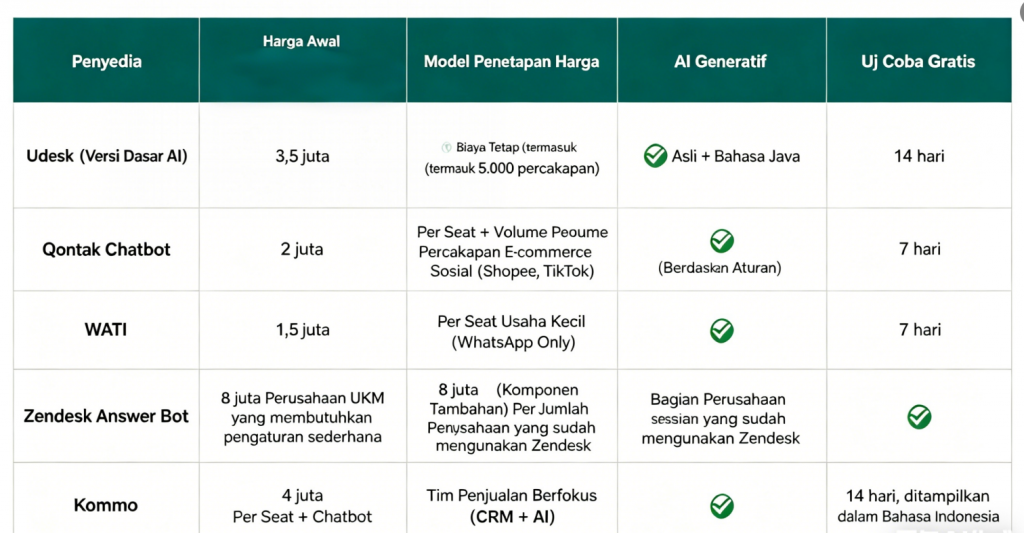 Contoh vendor: Udesk Pro, Kommo, Zendesk AI