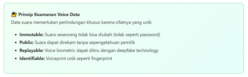 | Data Sensitif | Data biometrik termasuk data sensitif | Voiceprint, data suara = data sensitif |