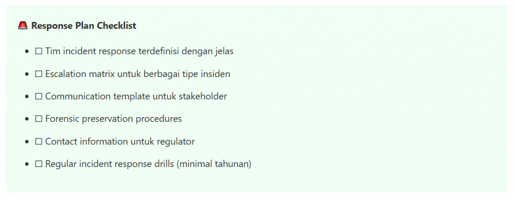 - Incident response plan yang teruji