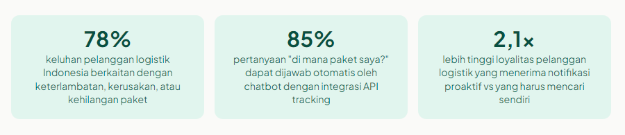 - Volume keluhan sangat tinggi dan berulang — "di mana paket saya?" adalah pertanyaan yang ditanyakan jutaan kali sehari di seluruh Indonesia