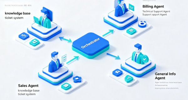 Sistem multi-agent untuk contact center adalah sekelompok agen AI yang masing-masing memiliki spesialisasi berbeda, bekerja sama di bawah koordinasi pusat untuk menyelesaikan permintaan pelanggan yang kompleks. Setiap agen bertindak seperti seorang ahli di bidangnya—misalnya agen tagihan, agen dukungan teknis, agen penjualan—dan mereka saling berbagi informasi serta mengalihkan tugas satu sama lain secara otomatis tanpa perlu pelanggan mengulang cerita.